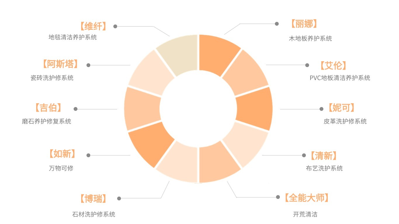 我们深信,碎片化的知识永远抵不过系统化的战斗力。因此,点燃洗护修学院汇聚了9大服务体系,涵盖了地毯、石材、PVC、软装布艺、磨石等几乎所有常见材质,并确保每一项服务体系都代表着行业专业水准。