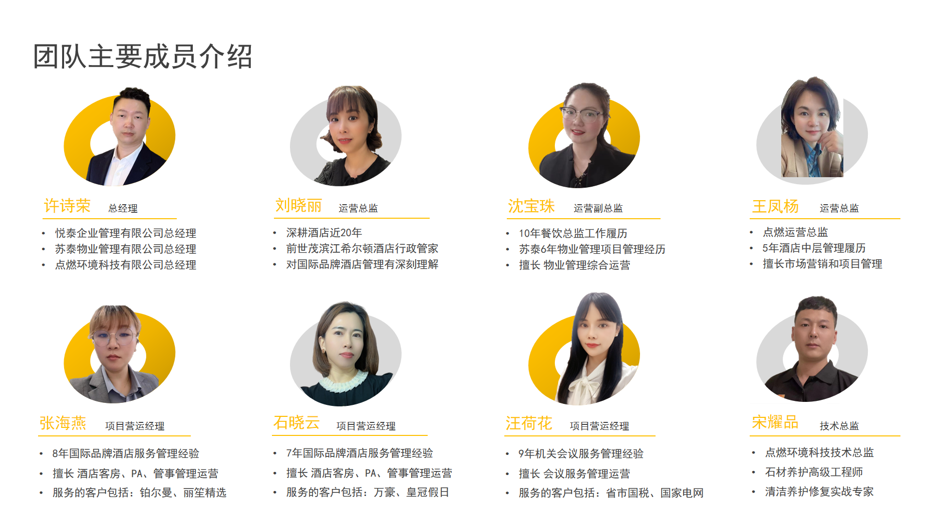 悦泰拥有一支技术过硬、纪律严明的现代经理人队伍,他们均具有丰富的行业经验,对清洁行业有深刻的理解和认识。这些人才不仅学有专长、经验丰富,而且忠于职守、精于工作,是确保客房卫生和清洁的重要力量。