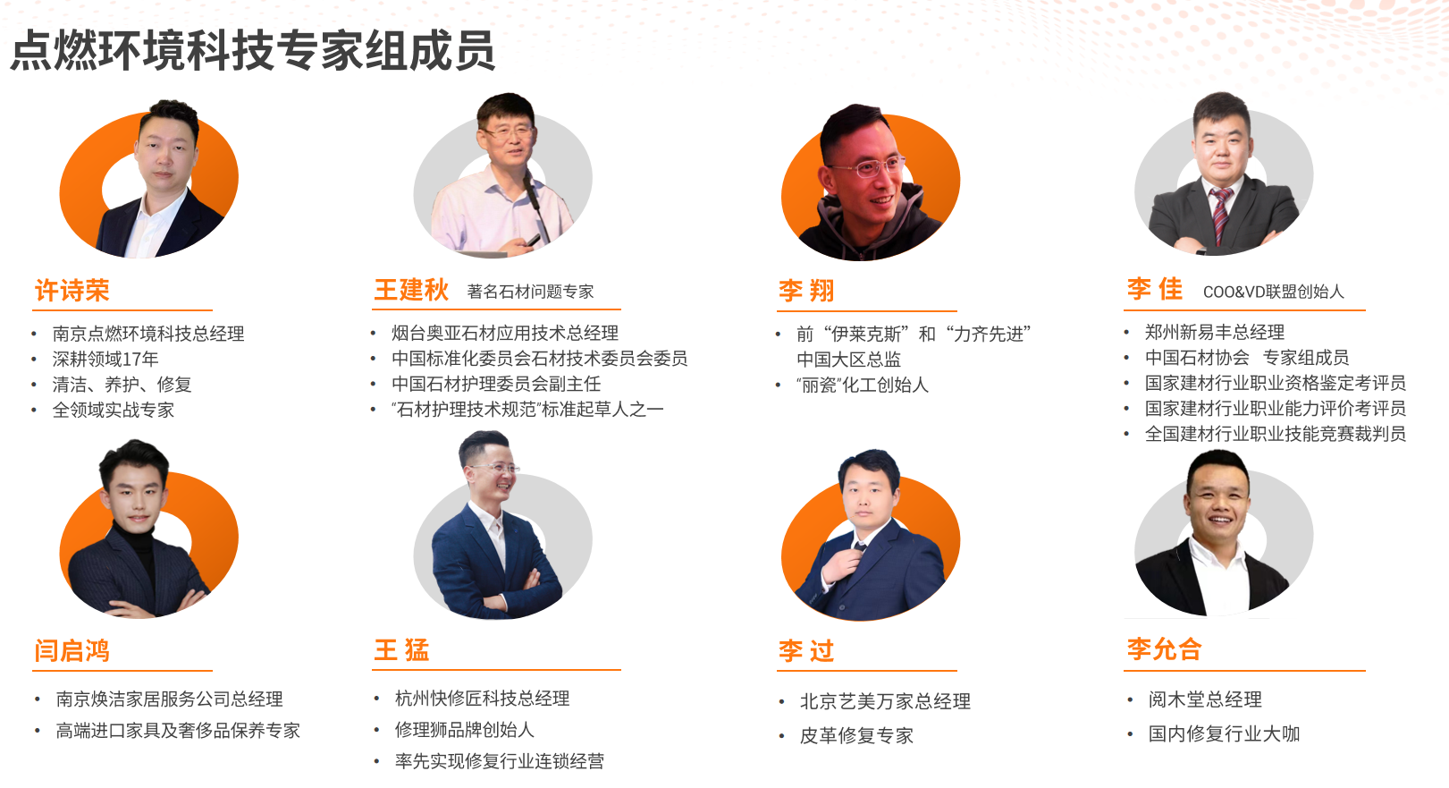 点燃洗护修学院于2022年创立,致力于为企业提供内训,并为客户设计楼宇全生命周期的清洗养护修复方案。点燃洗护修学院汇集十几位国内top的洗护和修复领域专人,为客户提供技术支撑,帮助客户提高质量,降低成本。